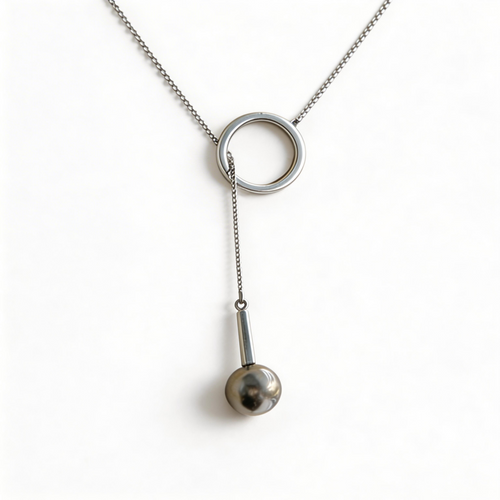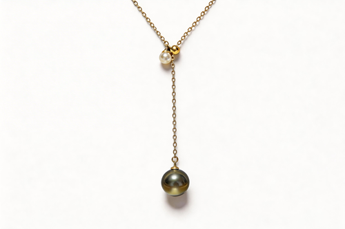 Adjustable Y-Necklace with Akoya Pearl & Tahitian Platinum Grey Pearl